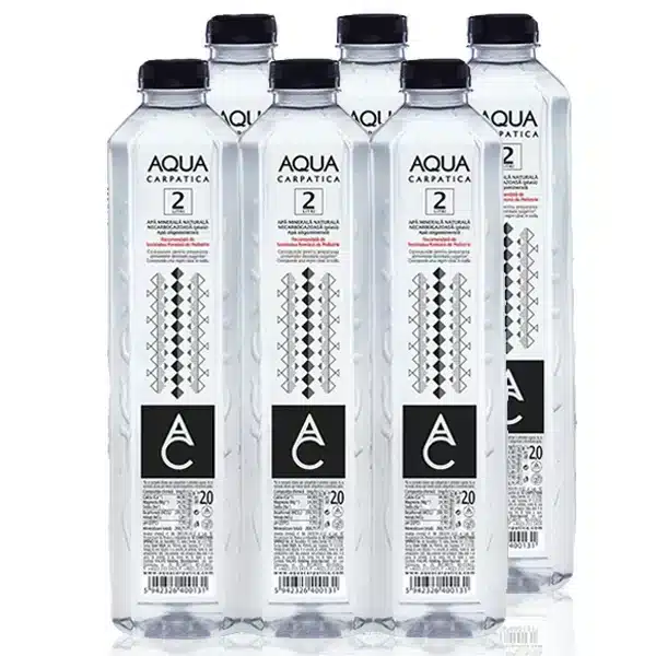 AQUA Carpatica minerală naturală plată are un conținut scăzut de minerale, intrând în categoria apelor oligominerale.
